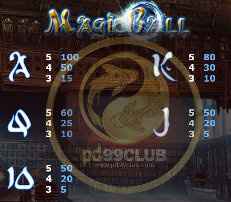 - โดยเกมส์นี้มีลูกแก้ววิเศษ 5 ลูก 5 สีได้แก่ ลูกแก้วสีน้ำเงิน, ลูกแก้วสีม่วง, ลูกแก้วสีแดง, ลูกแก้วสีเขียวและ ลูกแก้วสีเหลือง ซึ่งอัตราการจ่ายรางวัลสัญลักษณ์ที่มากที่สุดคือลูกแก้วสีน้ำเงินโดยหากพบสัญลักษณ์ลูกแก้วสีน้ำเงิน 5 สัญลักษณืจะได้รับรางวัล 800 บาทเป็นสัญลักษณ์รางวัลสูงสุดอับ 1 เลยก็ว่าได้