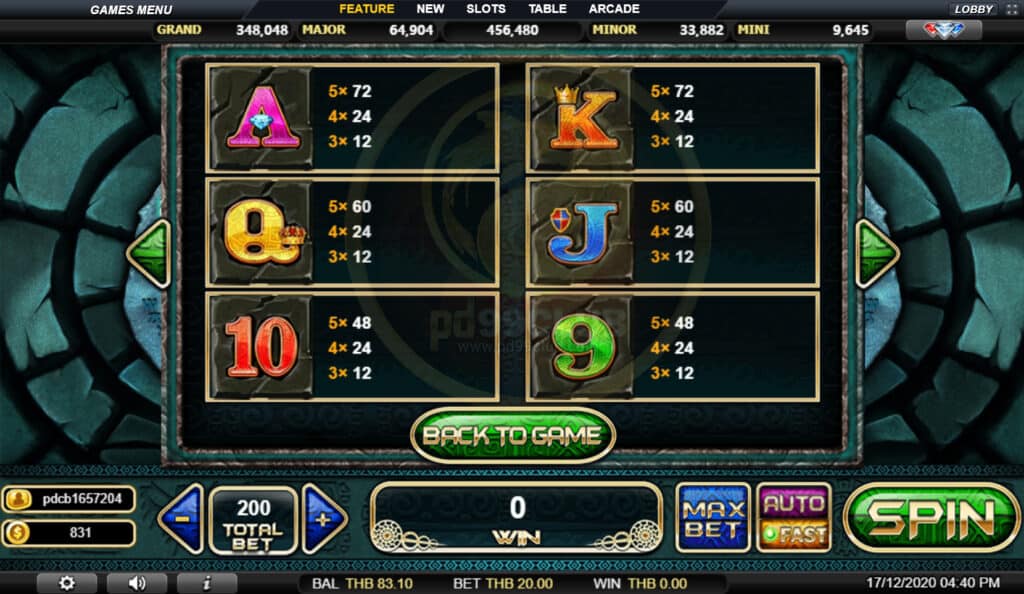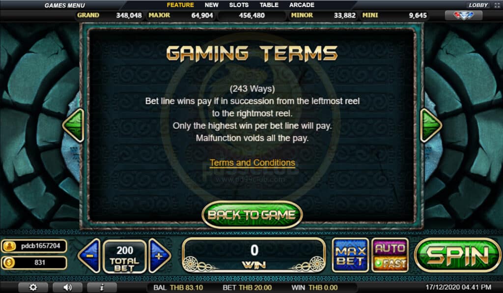 (243 วิธี) สายการเดิมพันชนะการจ่ายเงินหากต่อเนื่องกันจากรีลซ้ายสุดไปยังรีลขวาสุด เฉพาะผู้ชนะสูงสุดต่อบรรทัดเดิมพันเท่านั้นที่จะจ่าย ความผิดปกติทำให้การจ่ายเงินทั้งหมดเป็นโมฆะ