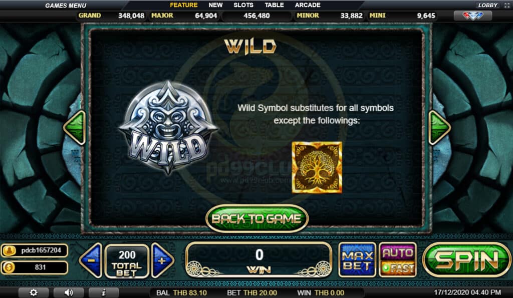 สัญลักษณ์ Wild สามารถใช้ทดแทนทุกสัญลักษณ์ยกเว้นสัญลักษณ์ Jackpot