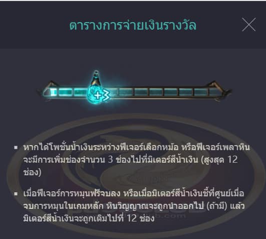 - จะได้รางวัลการหมุนฟรี 10 รอบเมื่อเริ่มฟีเจอร์การหมุนฟรี