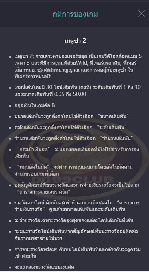 - จะจ่ายรางวัลสูงสุดของเเต่ละเพย์ไลน์เดิมพันที่เล่น