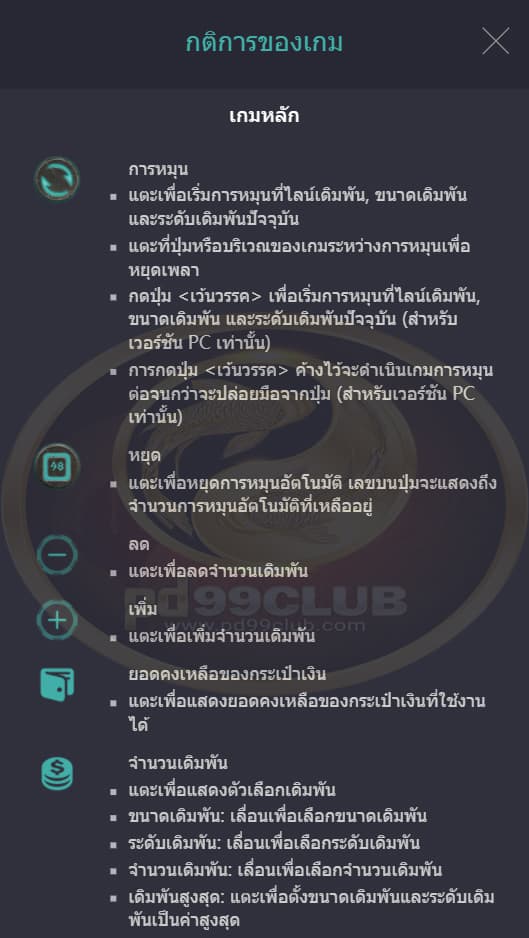- จำนวนเดิมพัน: เลื่อนเพื่อเลือกจำนวนเดิมพัน