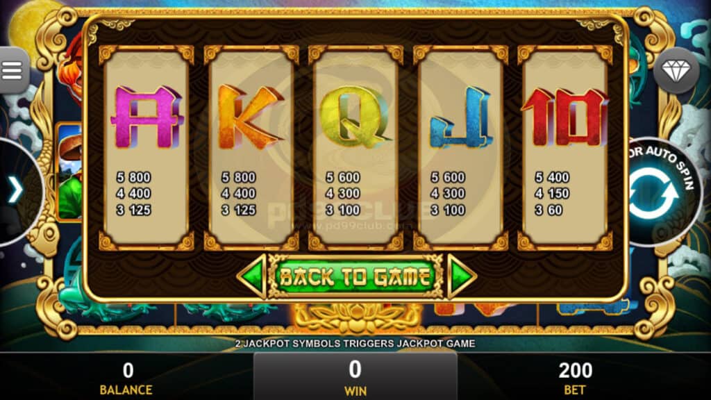 สัญลักษณ์ Jackpot 2 ตัวจะปรากฏบนรีล 1 และ 5 จะทำให้เกมแจ็คพอตขึ้น! ผู้เล่นจะมีโอกาสชนะรางวัลเป็นจำนวนเงินที่แสดงในแผนภูมิโปรเกรสซีฟแจ็คพอต