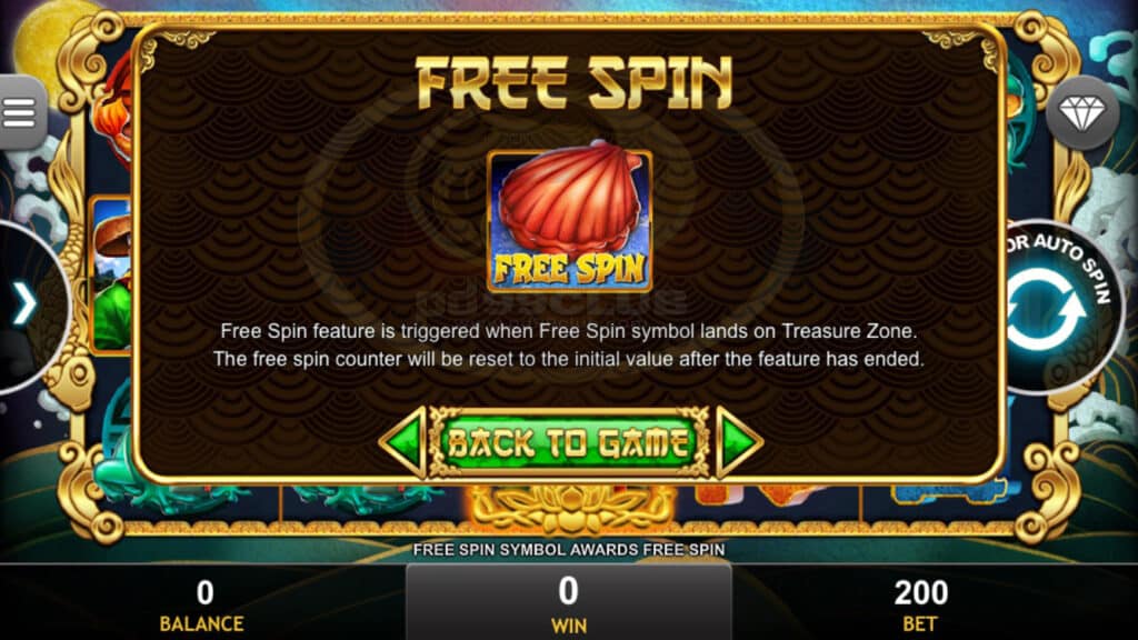 สัญลักษณ์ Free Spin จะทำงานเมื่อสัญลักษณ์ Free Spin ตกลงบน Treasure Zone ตัวนับการหมุนฟรีจะถูกรีเซ็ตเป็นค่าเริ่มต้นหลังจากคุณสมบัติสิ้นสุดลง