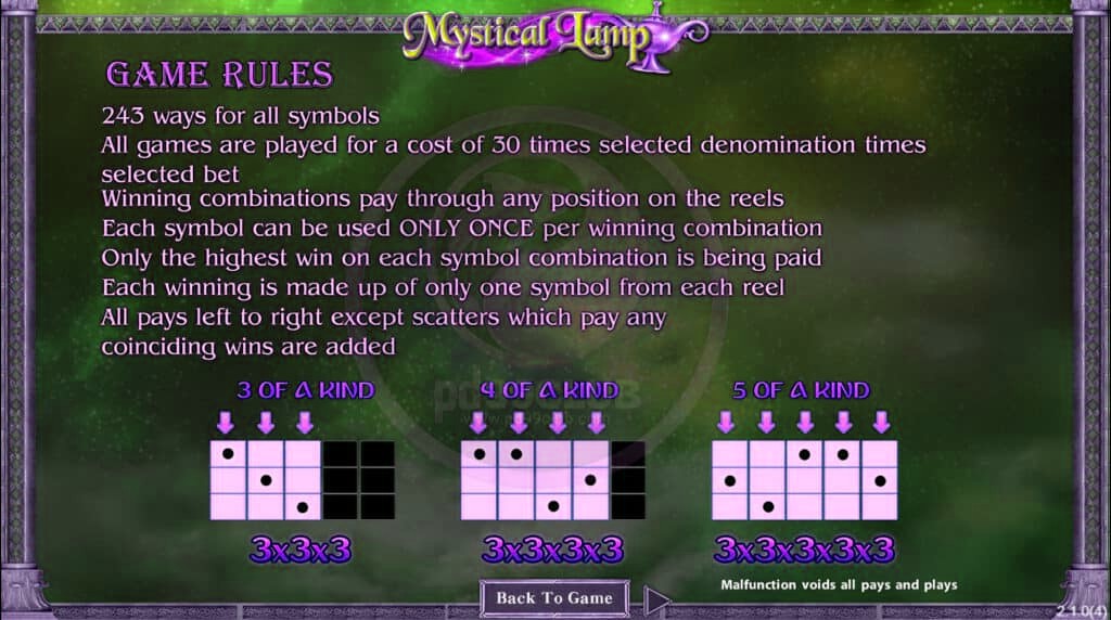 กฏกติกาของเกม Mystical Lamp