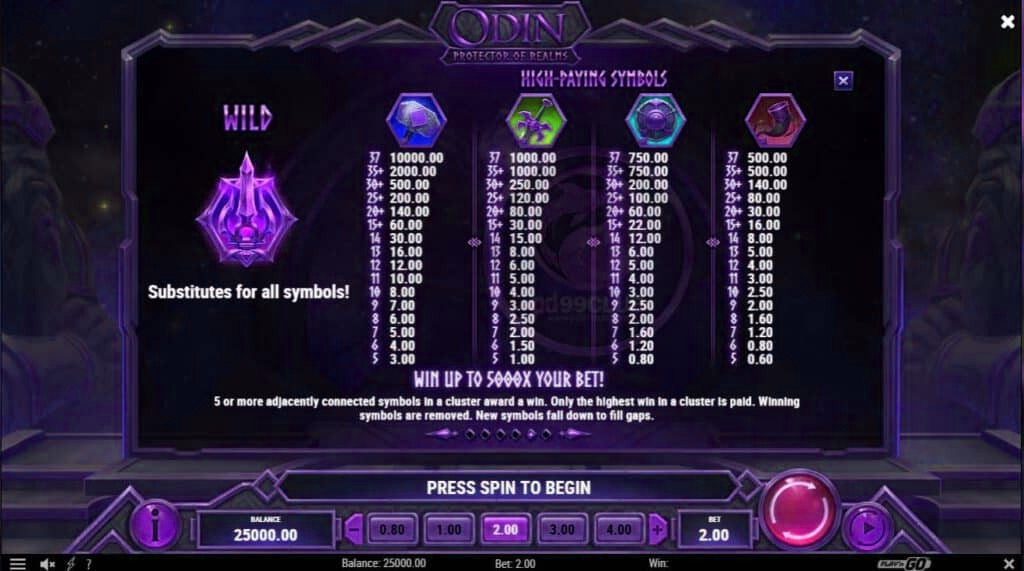 เกมสล็อต Odin Protector of the Realms เป็นเกมสล็อตออนไลน์ที่ถูกพัฒนาโดย slotxoeasy ด้วยธีมตำนานนอร์สการออกแบบในสล็อตนั้นยอดเยี่ยมมาก ฉากนี้คืออาณาจักรนอร์สแห่งแอสการ์ดซึ่งโอดินถูกตั้งข้อหาปกป้อง โดยมีดวงดาวระยิบระยับบนท้องฟ้ายามค่ำคืนอยู่ด้านหลัง วงล้อถูกขนาบข้างด้วยรูปปั้นอันทรงพลังคู่หนึ่ง และเฝ้ามองดูโดยร่างสูงตระหง่านของโอดินด้วยตัวเขาเอง บนวงล้อคุณจะเห็นชุดสัญลักษณ์หินรูนที่มีมูลค่าต่ำกว่า สิ่งเหล่านี้เข้าร่วมด้วยเขาล่าสัตว์ โล่ ดาบ และค้อน ค้อนเป็นสัญลักษณ์ที่คุ้มค่าที่สุด การเติมตารางทั้งหมดด้วย 37 รายการเหล่านี้มอบรางวัลสูงสุด 5,000 x เงินเดิมพัน