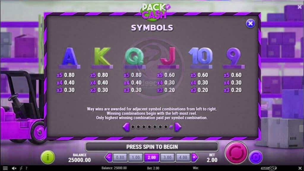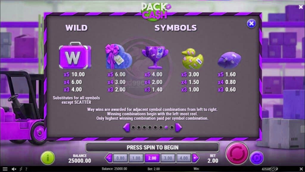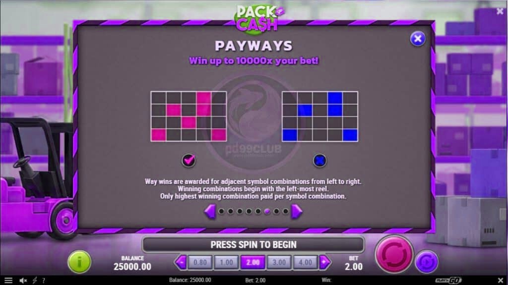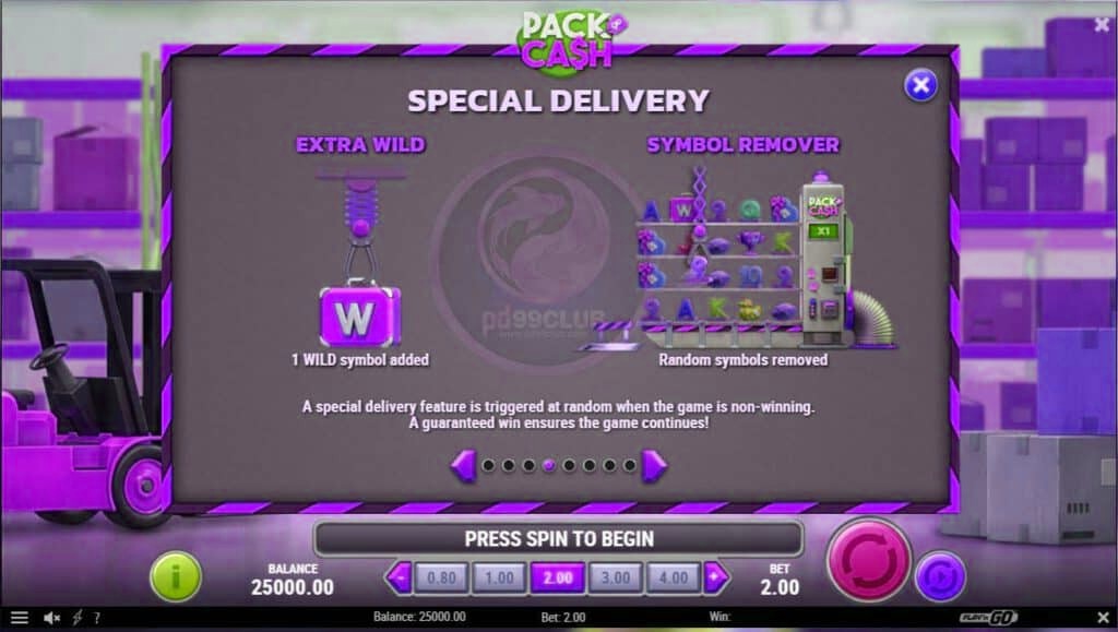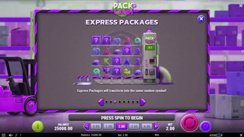 เกมสล็อต Pack and Cash เป็นเกมสล็อตออนไลน์ที่ถูกพัฒนาโดย slotxoeasy เกมที่ดำเนินไปอย่างรวดเร็วนี้เห็นผู้เล่นได้รับการว่าจ้างจากบริษัทบริการจัดส่งสินค้าแห่งใหม่ สภาพแวดล้อมที่มีสีสันพร้อมพัสดุที่หลั่งไหลเข้ามาอย่างสม่ำเสมอจะทำให้ผู้เล่นไม่ว่าง แต่พวกเขาต้องมีไหวพริบเกี่ยวกับพวกเขาในขณะที่ Express Packages บินผ่านไป เกมนี้เต็มไปด้วยคุณสมบัติกลไกการเรียงซ้อนสัญลักษณ์ด้านข้างที่เป็นนวัตกรรมใหม่ นำเสนอบางสิ่งที่ไม่ธรรมดาให้กับการเรียงซ้อนจากบนลงล่างตามปกติ ในแต่ละน้ำตกตัวคูณจะเพิ่มขึ้นทีละหนึ่งทำให้ผู้เล่นนั่งไม่ติดเก้าอี้ อีกวิธีที่สร้างสรรค์ในเกมนี้ทำให้ผู้เล่นมีส่วนร่วมคือการใช้ Express Packages เมื่อถูกกระตุ้นพวกมันจะให้สัญลักษณ์ลึกลับ ซึ่งอาจเป็นสัญลักษณ์เสริมเมื่อลงจอดบนวงล้อ สัญลักษณ์ลึกลับทั้งหมดจะเปิดเผยสัญลักษณ์ที่ตรงกันเหมือนกัน สามารถเลือกสัญลักษณ์ใดก็ได้ (ยกเว้น Scatter) ให้เป็น Express Package
