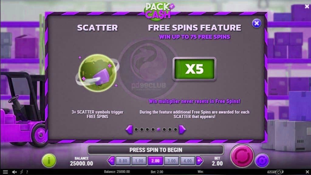 - ในระหว่างคุณลักษณะนั้น สามารถได้รับ Free Spins เพิ่มสำหรับ Scatter แต่ละอันที่ปรากฏขึ้น