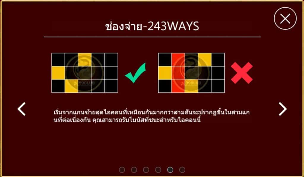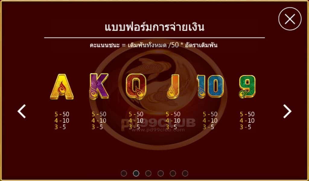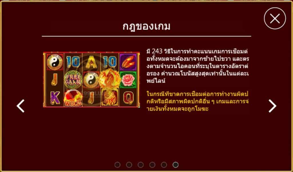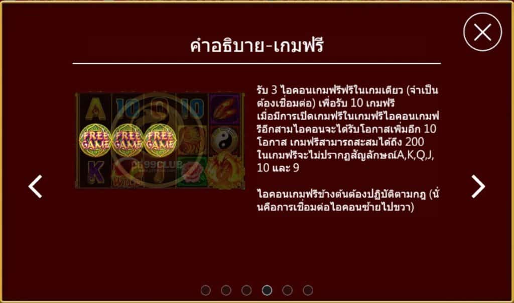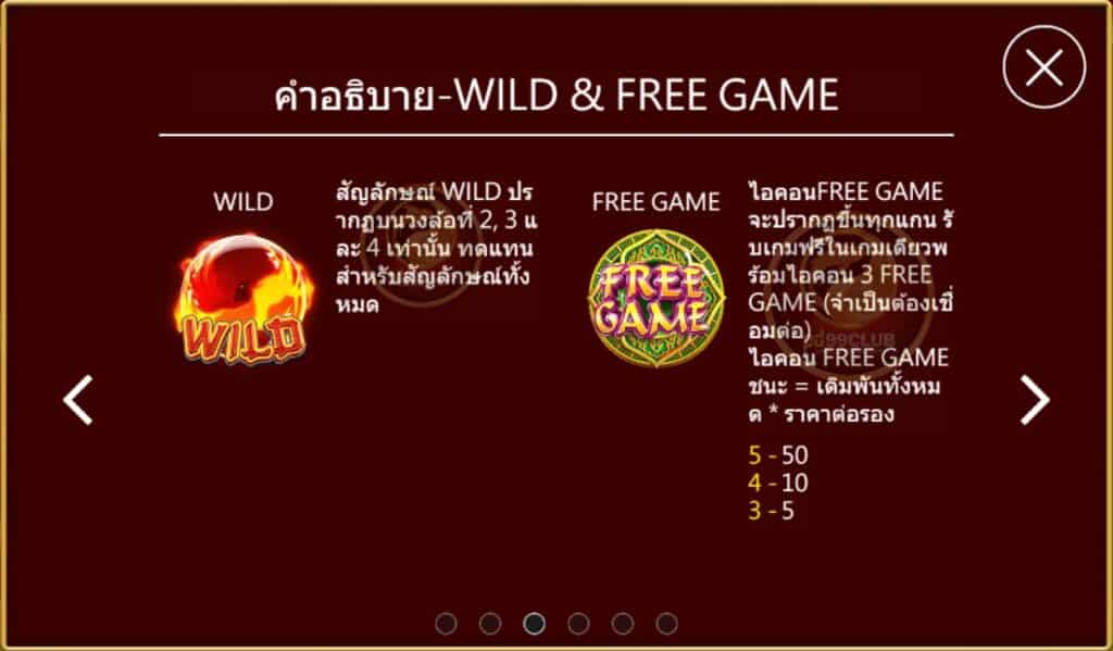 สัญลักษณ์ Free Game ไอคอน Free Game จะปรากฏขึ้นทุกแกน รับเกมฟรีในเกมเดียวพร้อม 3 Free Game (จำเป็นต้องเชื่อมต่อกกัน) ไอคอน Free Game ชนะ=เดิมพันทั้งหมด*ราคาต่อรอง