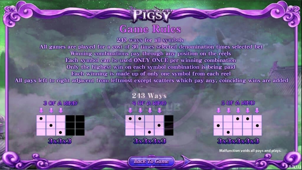 กฏกติกา และ 243 Ways ของเกม Pigsy