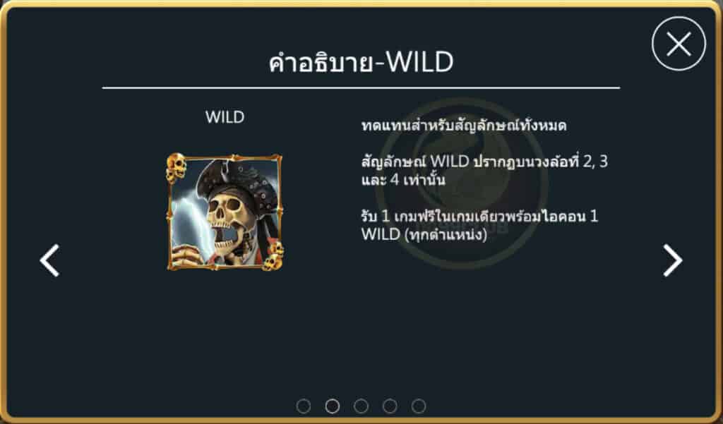 สัญลักษณ์ Wild ใช้แทนสัญลักษณ์ทุกตัว สัญลักษณ์ Wild ปรากฏบนวงล้อที่ 2, 3 และ 4 เท่านั้น รับ 1 เกมฟรีในเกมเดียว พร้อมไอคอน 1 Wild (ทุกตำแหน่ง)
