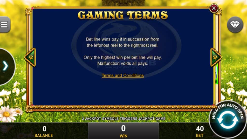 สัญลักษณ์ Jackpot Game 2 แจ็คพอตที่ปรากฏบนวงล้อ 1 และ 5 จะทำให้เกมแจ็คพอตเริ่มขึ้น! ผู้เล่นจะมีโอกาส 9multiplier แผนภูมิแจ็คพอตโปรเกรสซีฟที่ร่ำรวย