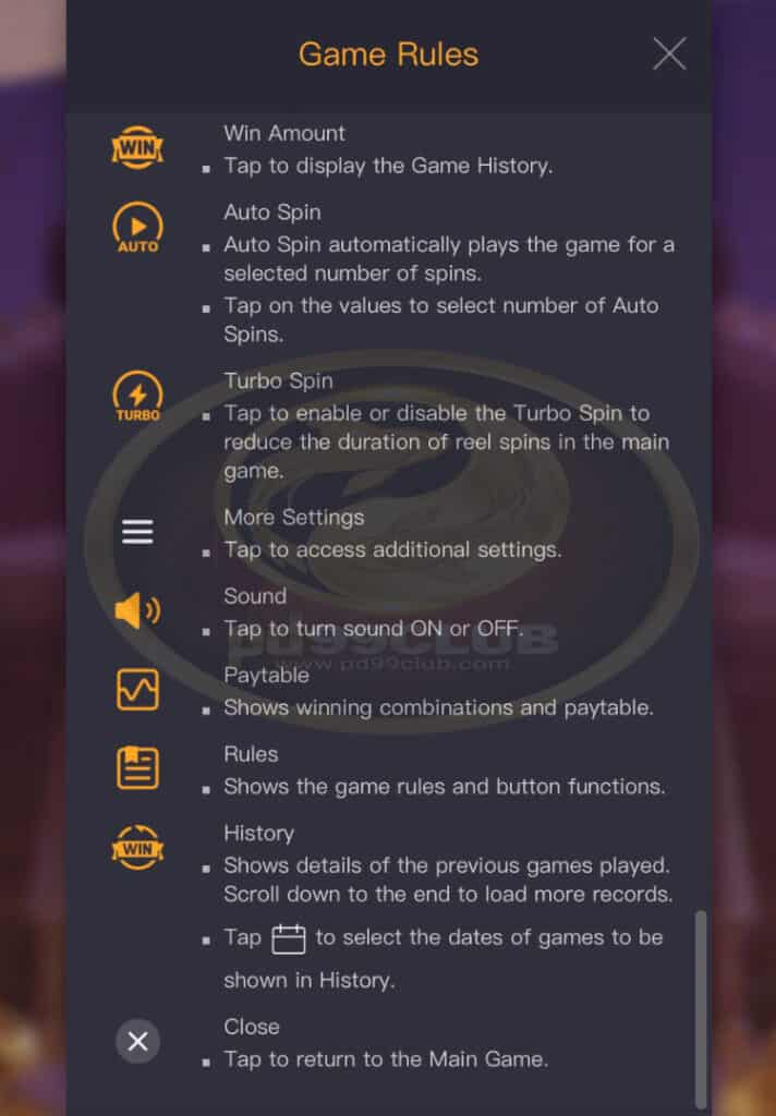 - ลดระยะเวลาการหมุนของรีลในตัวหลักแตะเพื่อเปิดหรือปิด Turbo Spin to game