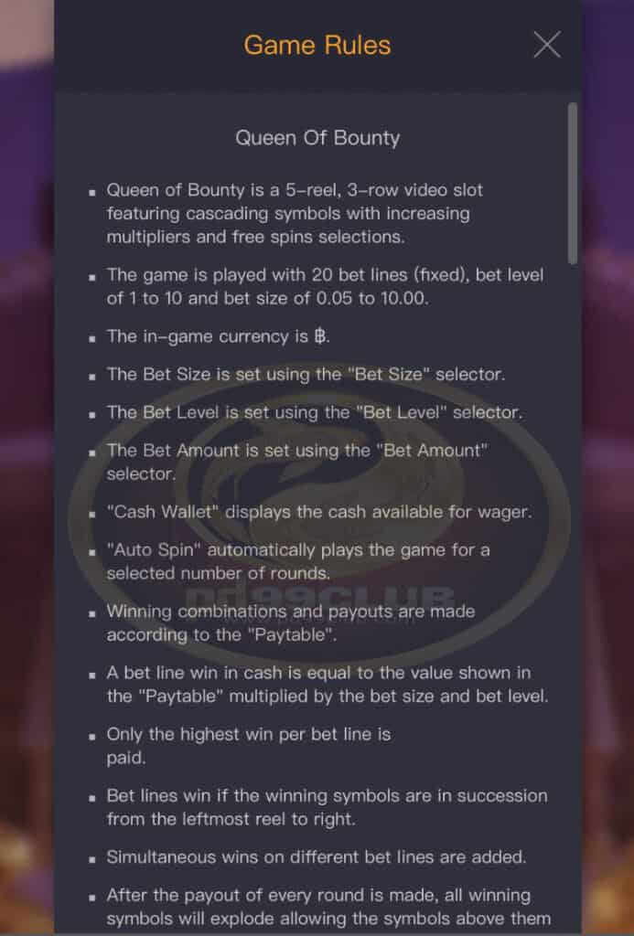 กฏของเกม Queen of Bounty