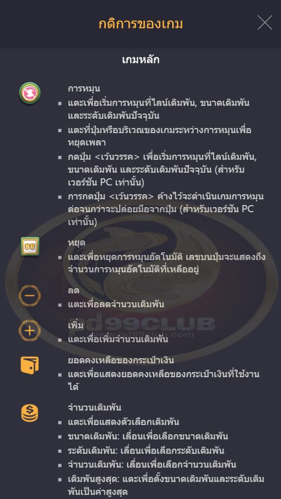 “ หมุนอัตโนมัติ” จะทำการหมุนเล่นเกมโดยอัตโนมัติตามจำนวนรอบเกมที่เลือก