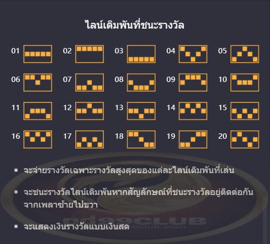 ไลน์เดิมพันที่ชนะรางวัลมีทั้งหมด 20 ไลน์เดิมพัน