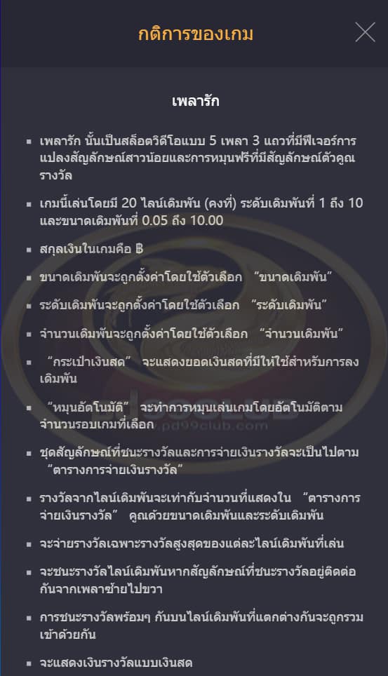 จะจ่ายรางวัลสูงสุดของเเต่ละเพย์ไลน์เดิมพันที่เล่น