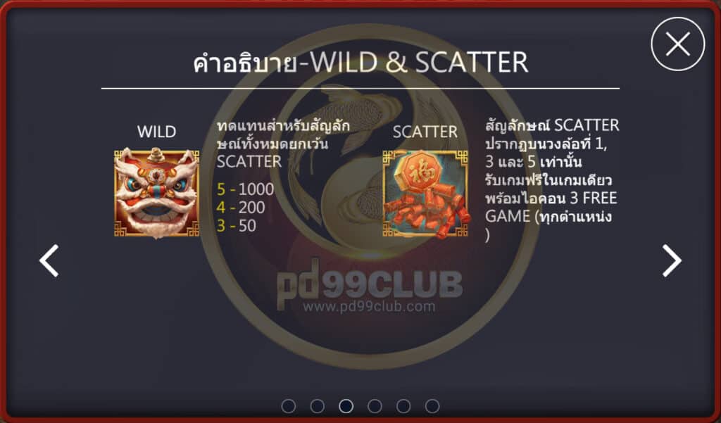 สัญลักษณ์ Wild ใช้แทนสัญลักษณ์ทุกตัว ยกเว้นสัญลักษณ์ Scatter