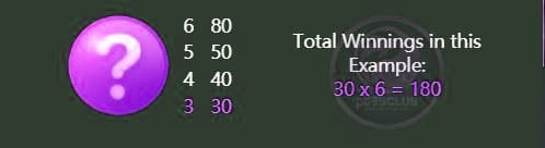 1 x 3 x 2 = 6 - การจ่ายรางวัลให้กับสัญลักษณ์ที่ชนะรางวัลนั้นทวีคูณตามจำนวนวิธีเดิมพันที่ได้รางวัล