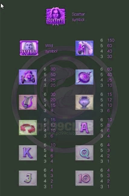 - สัญลักษณ์พิเศษ ม้าของอพอลโล เป็นสัญลักษณ์ที่มีการจ่ายอัตราเงินเดิมพันสูงสุดในเกมสล็อต ไรส์ออฟ อพอลโล อัตราการจ่ายตั้งแต่ 30–150 เท่า