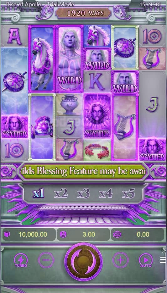 - Rise of Apollo เป็นวิดีโอสล็อต 6 เพลา 6 แถวที่มี Wild กำลังมา และตัวคูณเงินรางวัลสูงสุดถึง x15