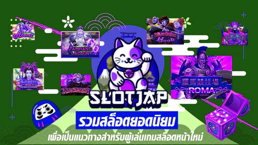 SLOTJAP ย่อมาจาก slotjapan ซึ่งสล็อตที่นี้จะมีโลโก้เป็นรูปแมวกวัก ซึ่งถือเป็นสัญลักษณ์แมวมงคลของญี่ปุ่น สำหรับสล็อตที่นี้มีให้บริการสามค่ายดังคือ