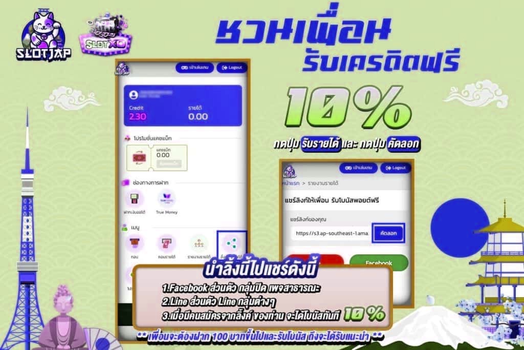 ระบบแนะนำเพื่อนของ m98bet จะคิดจากยอดเสียของเพื่อนโดนจะได้ 5% สามารถถอนได้ไม่มีขั้นต่ำ และสิ่งที่เรากล้าให้มากกว่าที่อื่นคือ สามารถใช้ได้สูงสุดสามชั้น หมายความว่าหากเพื่อนแนะนำเพื่อนต่อ คนที่อยู่ต้นสายก็จะได้รับเงินค่าคอมด้วย หากทำขำพอได้ค่าขนม หากทำจริงจังสามารถทำเป็นอาชีพได้เลย โดยเพื่อนๆต้องสมัครสมาชิกก่อนแต่ไม่ต้องฝากเงินก็ได้ระบบจะสร้างลิ้งไปให้เพื่อนๆไว้ส่งต่อเพื่อแนะนำ เมื่อเปรียบเทียบกับ slotjap นั้นจะให้เพียงแค่ 10% ครั้งแรกครั้งเดียว