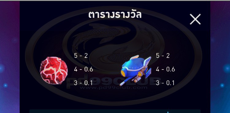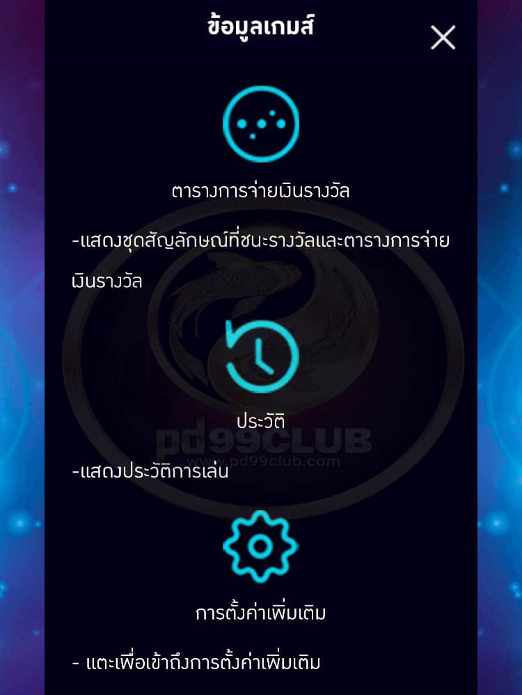 - เเสดงชุดสัญลักษณ์ที่ชนะรางวัลเเละตารางการจ่ายเงินรางวัล