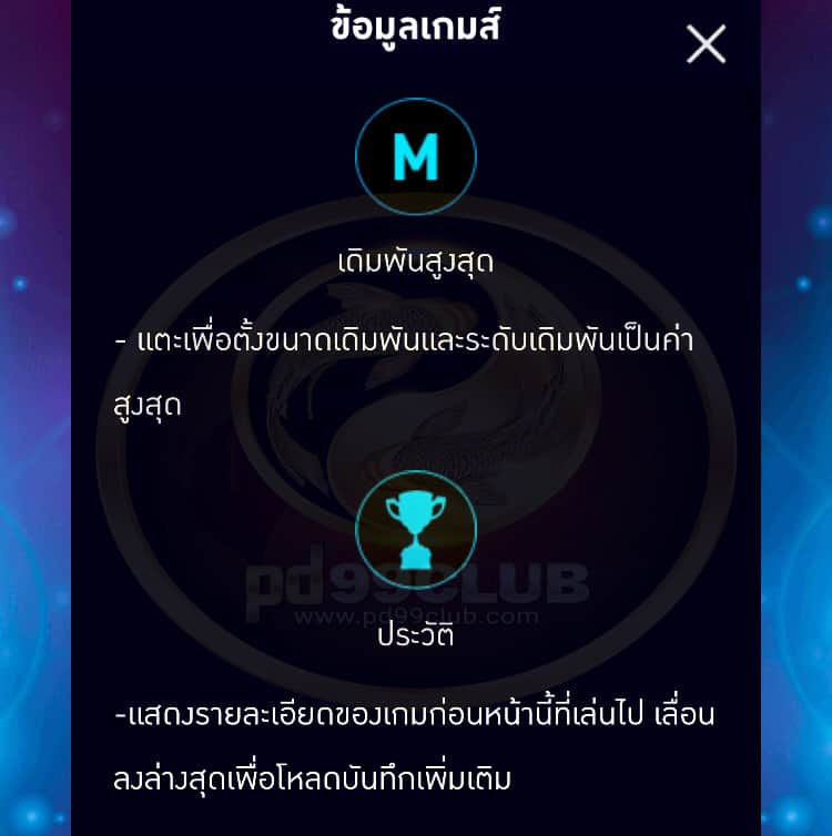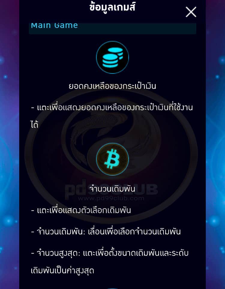 - จำนวนสูงสุด:เเตะเพื่อตั้งขนาดเดิมพันและระดับเดิมพันเป็นค่าสูงสุด