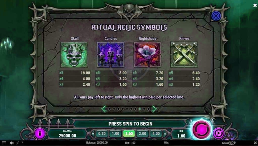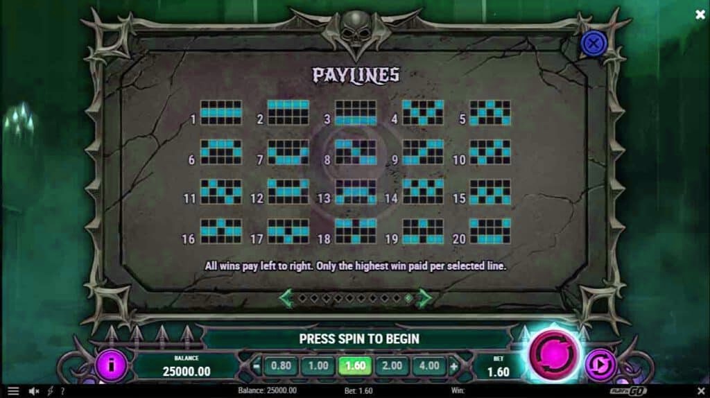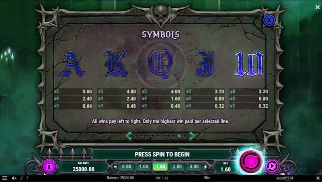 ฟีเจอร์ Crypt Spins , สัญลักษณ์การจ่าย และไลน์เดิมพัน