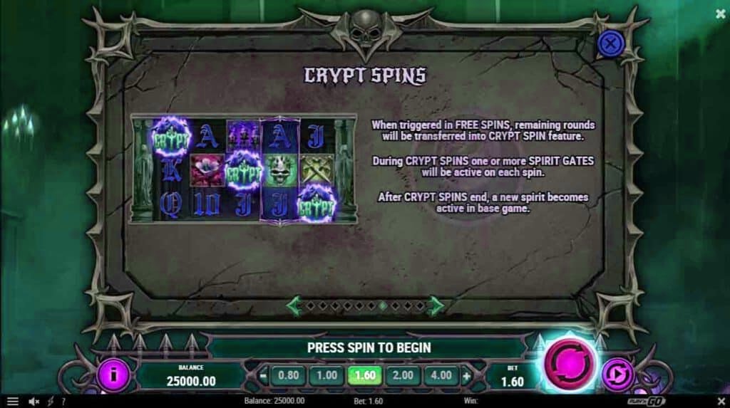 - ในระหว่าง Spirit Gates Crypt Spins ตั้งเเต่หนึ่งอันขึ้นไปจะทำงานในการหมุนเเต่ละครั้ง