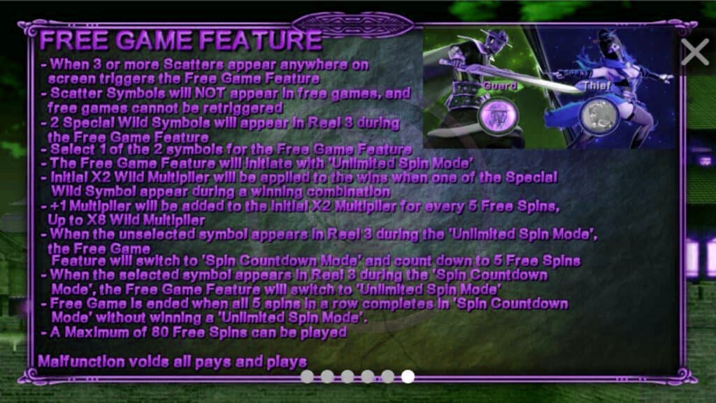 - สัญลักษณ์กระจาย จะไม่ปรากฏระหว่างฟรีเกม และฟรีเกมไม่สามารถเกิดขึ้นซํ้าได้