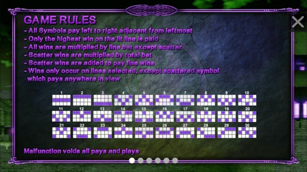 - รางวัลจะได้รับเฉพาะจากแถวที่เลือกไว้ยกเว้นสัญลักษณ์กระจายจะจ่ายรางวัลไม่ว่าจะอยู่ที่ใดบนหน้าจอ