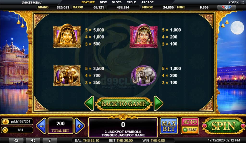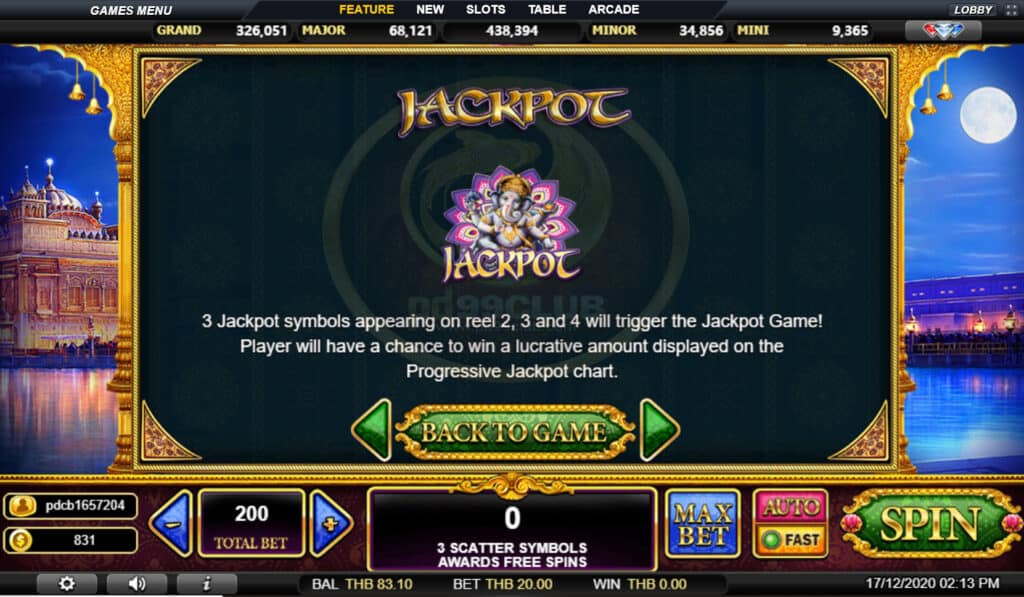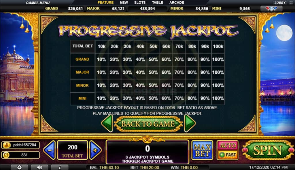 สัญลักษณ์ Progressive Jackpot การจ่ายเงินแจ็คพอตแบบก้าวหน้าขึ้นอยู่กับอัตราส่วนการเดิมพันทั้งหมดข้างต้นเล่นเส้นสูงสุดเพื่อให้มีคุณสมบัติเหมาะสมสำหรับแจ็คพอตแบบก้าวหน้า