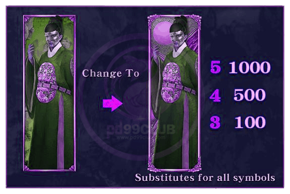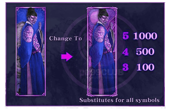 - สัญลักษณ์ผู้ชายถือดาบ ติดกัน 3 ตัว อัตราการจ่ายเงินรางวัลที่คูณ 20 หากออกติดกัน 4 ตัว คูณ 80 หากออกติดกัน 5 ตัวคูณ 200