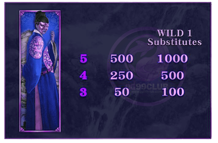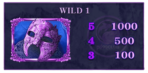 - สัญลักษณ์ Wild Symbol 1 จะเเทนที่สัญลักษณ์ทุกสัญลักษณ์