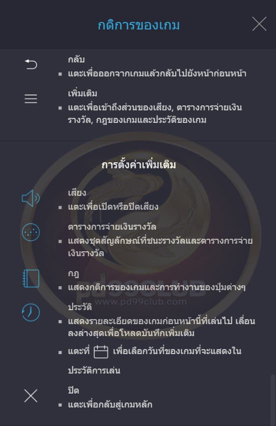 แสดงกติการของเกมและการทำงานของปุ่มต่างๆ