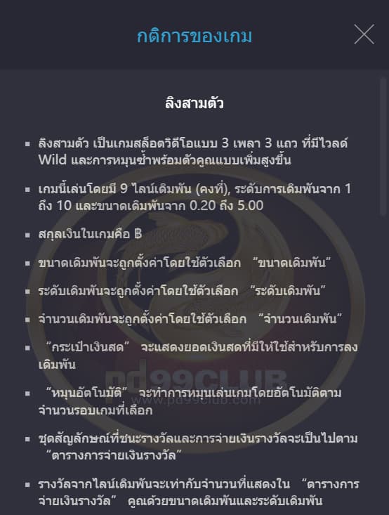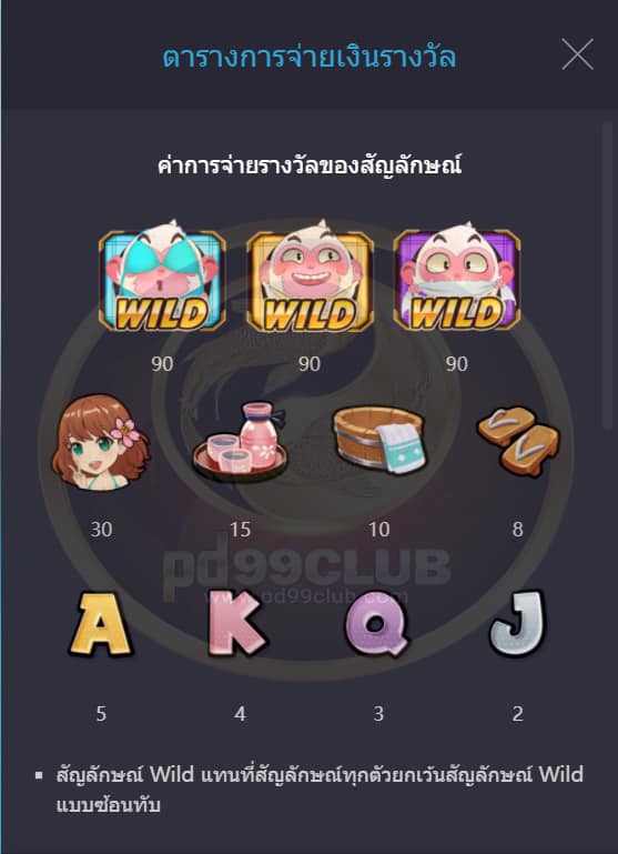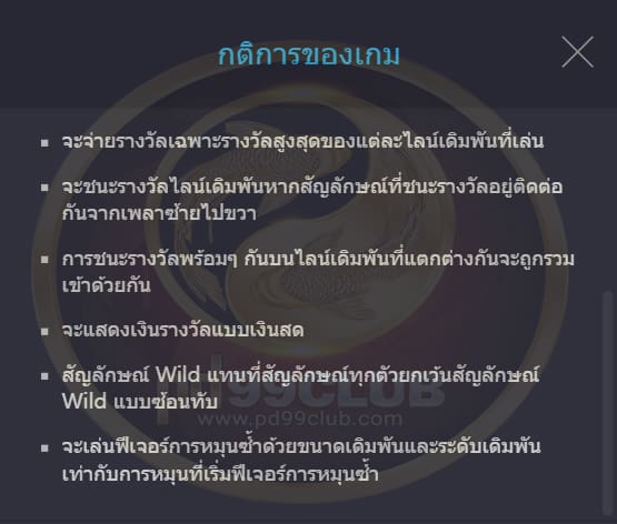 จะจ่ายรางวัลเฉพาะรางวัลสูงสุดของเเต่ละเพย์ไลน์เดิมพันที่เล่น