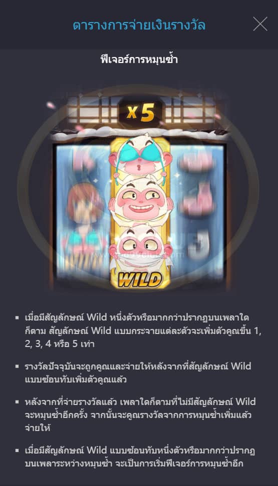 กติกาสัญลักษณ์ Wild แบบซ้อนทับ และกติกา ฟีเจอร์การหมุนซํ้า
