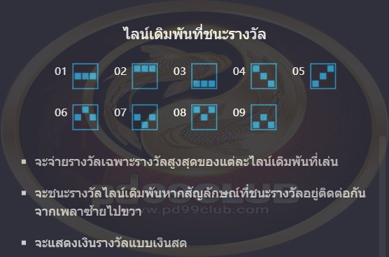 ไลน์เดิมพันที่ชนะรางวัลมีทั้งหมด 9 ไลน์เดิมพัน