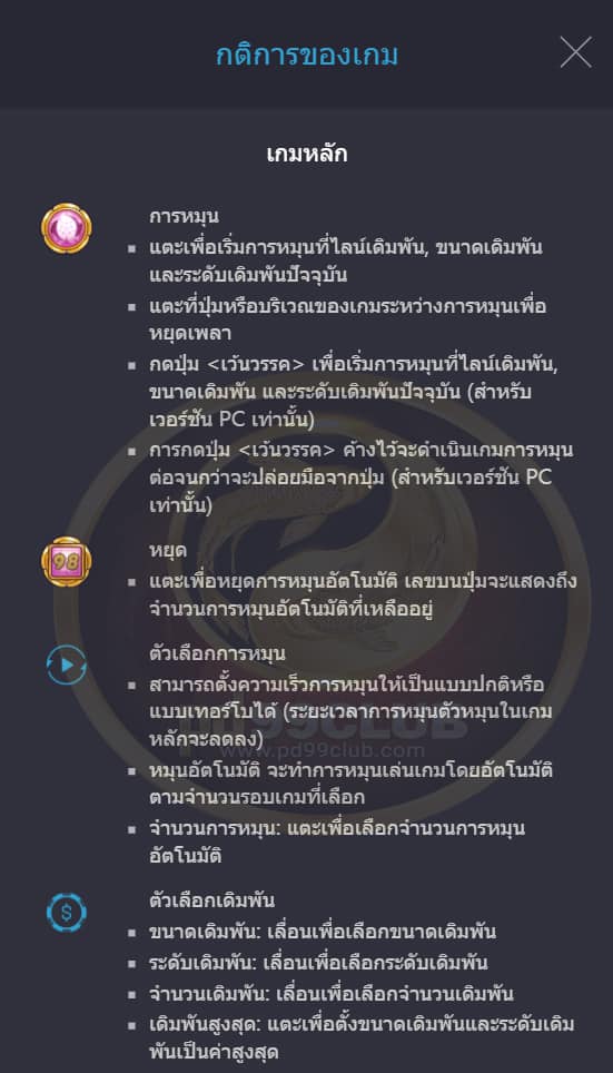 “ หมุนอัตโนมัติ ” จะทำการหมุนเล่นเกมโดยอัตโนมัติตามจำนวนรอบเกมที่เลือก