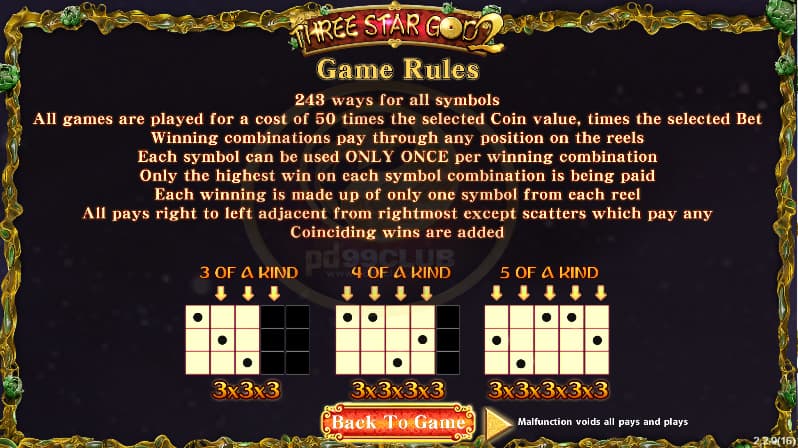สัญลักษณ์พิเศษของเกม Three Star God 2