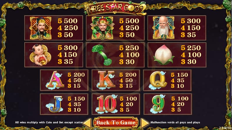 สัญลักษณ์อัตราการจ่ายของเกม Three Star God 2