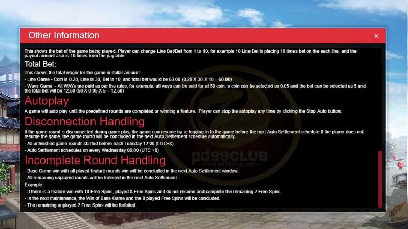 - หากเกิดข้อผิดพลาดการเล่น และการเชื่อมต่อรางวัลทั้งหมดจะถูกโมฆะ