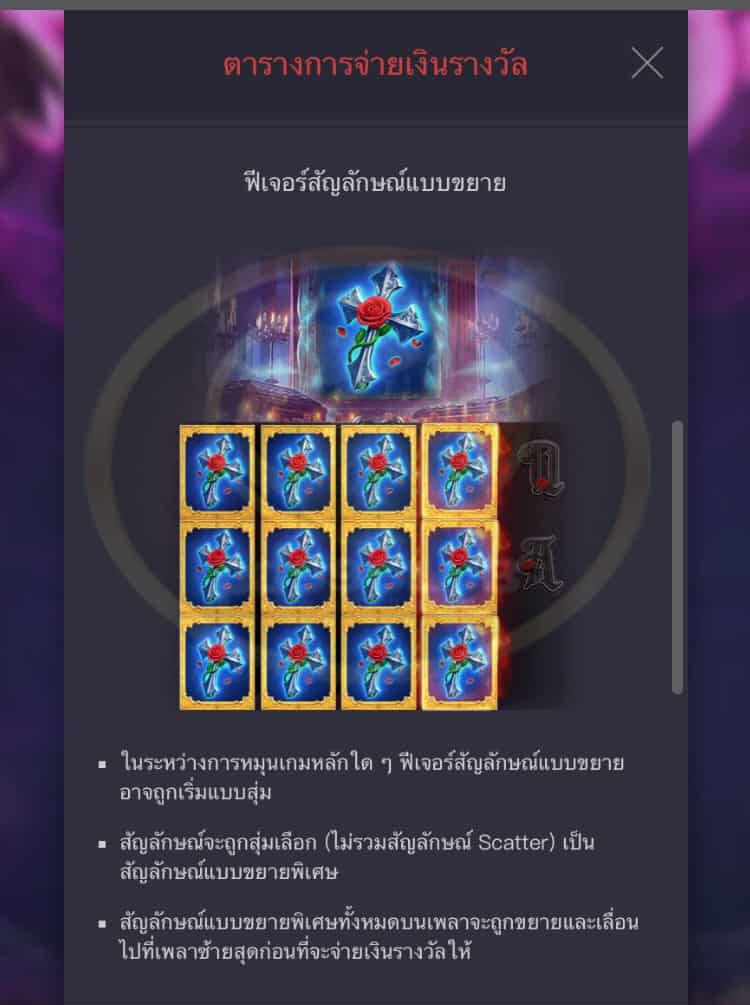 - ในระหว่างการหมุนเกมหลักใดๆ ฟีเจอร์สัญลักษณ์เเบบขยายอาจถูกเริ่มเเบบสุ่ม