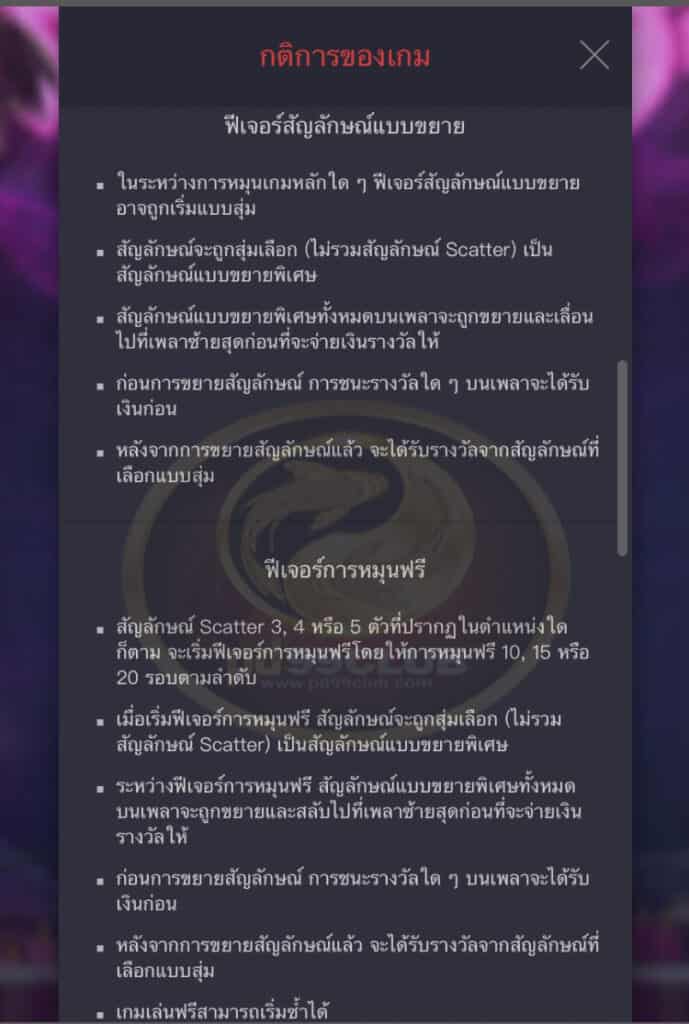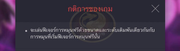 - จะเล่นฟีเจอร์การหมุนฟรีด้วยขนาดและระดับเดิมพันเดียวกันกับการหมุนฟีเจอร์ฟรีนั้น