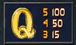 - สัญลักษณ์อักษร Q และสัญลักษณ์อักษร J สัญลักษณ์เชื่อมต่อกันจากซ้ายไปขวา 5 สัญลักษณ์ อัตราการจ่ายอยู่ที่ 100 บาท
