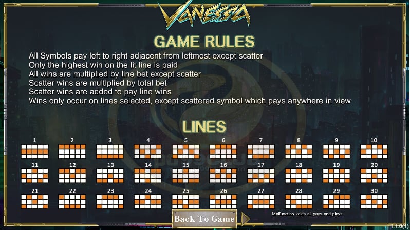 - ไลน์เดิมพันของเกม Vanessa มีทั้งหมด 30 ไลน์เดิมพัน