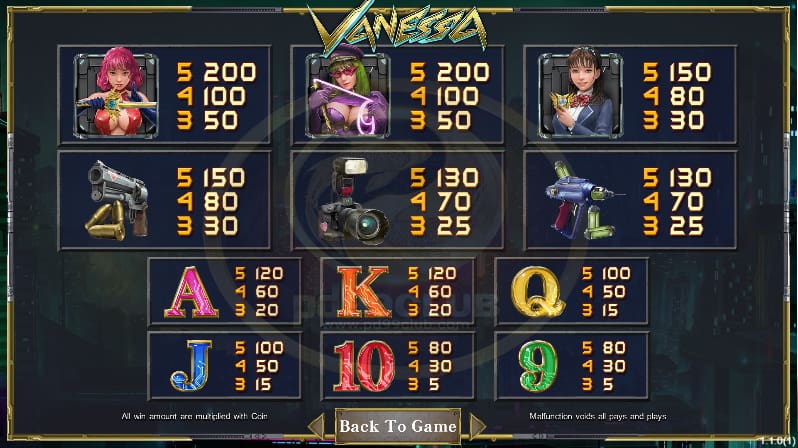 - สัญลักษณ์อัตราการจ่ายของเกม Vanessa มีทั้งหมด 12 สัญลักษณ์