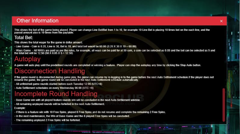 - รอบเกมที่ยังเล่นไม่จบทุกรอบเริ่มต้นก่อนทุกวันอังคารเวลา 12:00 น. (UTC+8)